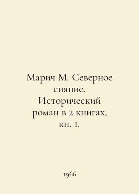 Maric M. Northern Lights. A historical novel in 2 books, book 1. In Russian /Marich M. Severnoe siyanie. Istoricheskiy roman v 2 knigakh, kn. 1. Petrozavodsk Karelian Book Publishing House. 1966. You are welcome to reach out to us for a detailed description of the copies currently available. Delivery of this book may take longer than usual including extended processing and pre-shipping time, no expedited shipping is available. Please advise us if you have a set date or a deadline to receive your order.SKUalb2bf07be979fd372f