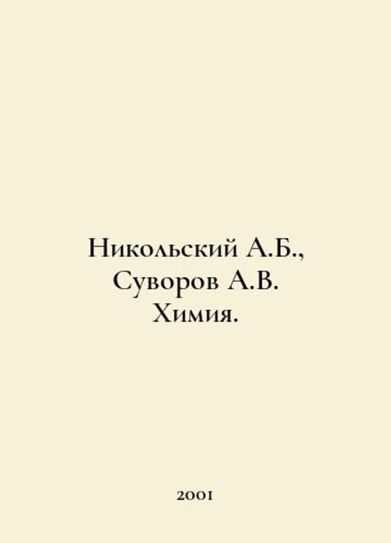 Nikolsky A.B., Suvorov A.V. Khimiya. In Russian /Nikolskiy A.B., Suvorov A.V. Khimiya. Textbook for Higher Education Institutions. St. Petersburg Chemizdat. 2001..You are welcome to reach out to us for a detailed description of the copies currently available. Delivery of this book may take longer than usual including extended processing and pre-shipping time, no expedited shipping is available. Please advise us if you have a set date or a deadline to receive your order. SKUalb2c347193315ff08f