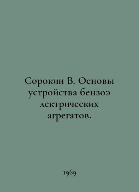 Sorokin V. Basics of the design of gasoline-electric units. In Russian /Sorokin V. Osnovy ustroystva benzoelektricheskikh agregatov. M DOSAAF 1969.You are welcome to reach out to us for a detailed description of the copies currently available. SKUalb2cf5b5358ffaed5b.