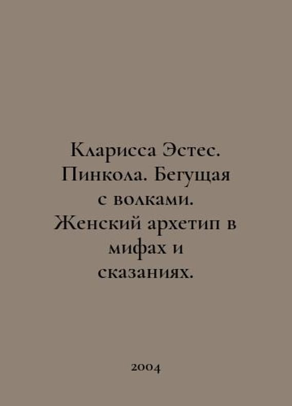 Clarissa Estes. Pincola. Running with wolves. The female archetype in myths and tales. In Russian /Klarissa Estes. Pinkola. Begushchaya s volkami. Zhenskiy arkhetip v mifakh i skazaniyakh. Translation from English by T. Naumenko. Moscow - Kiev Sofia. 2004.You are welcome to reach out to us for a detailed description of the copies currently available. SKUalb2d8ea3d15dc37f38.