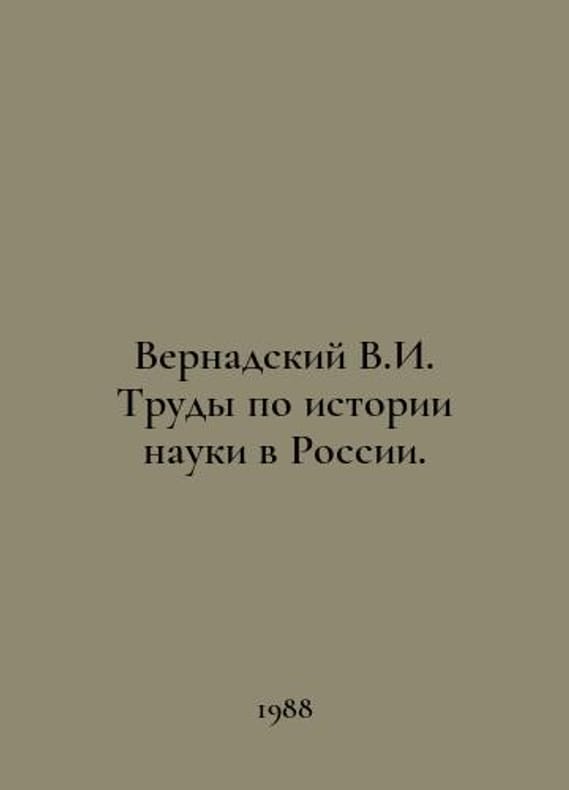 Vernadsky V.I. Proceedings on the History of Science in Russia. In Russian /Vernadskiy V.I. Trudy po istorii nauki v Rossii. Academy of Sciences of the USSR. Commission on the development of the scientific heritage of academician V.I. Vernadsky. Institute of the History of Natural Science and Technology. Archive of the Academy of Sciences of the USSR. M. Science. 1988. You are welcome to reach out to us for a detailed description of the copies currently available. Delivery of this book may take longer than usual including extended processing and pre-shipping time, no expedited shipping is available. Please advise us if you have a set date or a deadline to receive your order.SKUalb2ddb6c419851a772