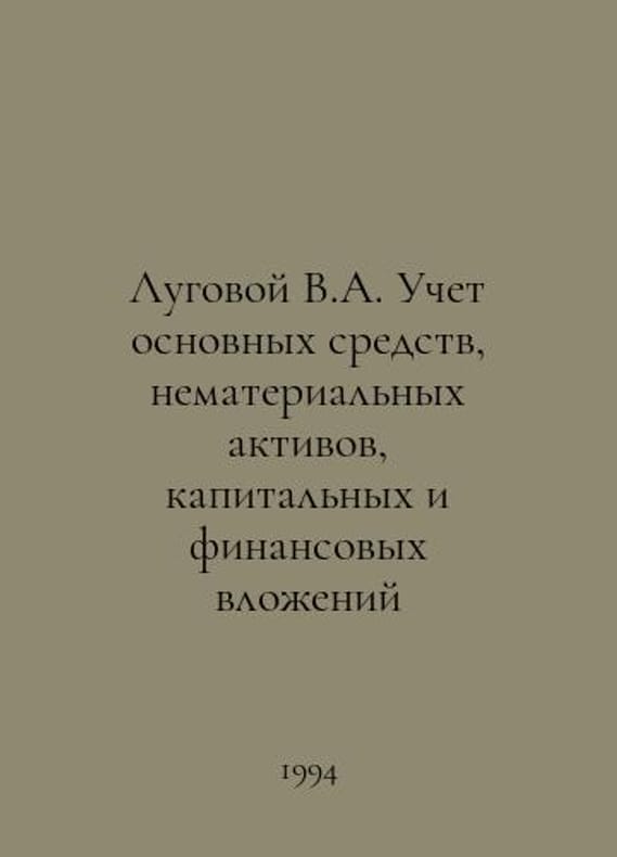 Lugovoi V.A. Accounting for fixed assets, intangible assets, capital and financial investments In Russian /Lugovoy V.A. Uchet osnovnykh sredstv, nematerialnykh aktivov, kapitalnykh i finansovykh vlozheniy 1994 128 s. You are welcome to reach out to us for a detailed description of the copies currently available. Delivery of this book may take longer than usual including extended processing and pre-shipping time, no expedited shipping is available. Please advise us if you have a set date or a deadline to receive your order.SKUalb2e37c042db42adb0