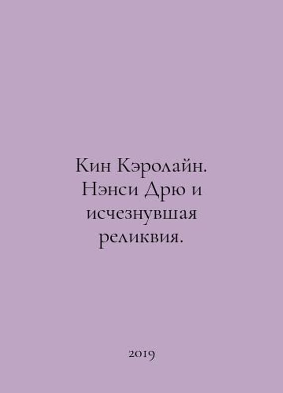 Keen Caroline. Nancy Drew and the Disappeared Relic. In Russian /Kin Kerolayn. Nensi Dryu i ischeznuvshaya relikviya. The series: Stories of Nancy Drew: The New Investigations of the ACT M. 2019 224 pp. You are welcome to reach out to us for a detailed description of the copies currently available. Delivery of this book may take longer than usual including extended processing and pre-shipping time, no expedited shipping is available. Please advise us if you have a set date or a deadline to receive your order.SKUalb2e9fced787d8e968