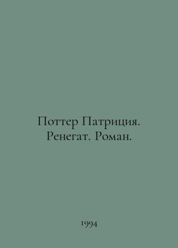 Potter Patricia. Renegade. Roman. In Russian /Potter Patritsiya. Renegat. Roman. Series: Library of a Love Novel. Translated from English by I. Ostapov. Artist A. Danilov. Editor V. Volkova. Saint Petersburg. Bibliopolis. 1994. 456 p. We have thousands of titles and often several copies of each title may be available. Please feel free to contact us for a detailed description of the copies available. SKUalb32beb143d5d1ce2f.