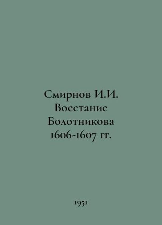 Smirnov I.I. Bolotnikovs Uprising of 1606-1607 In Russian /Smirnov I.I. Vosstanie Bolotnikova 1606-1607 gg. L Gopolitizdat 1951. You are welcome to reach out to us for a detailed description of the copies currently available. Delivery of this book may take longer than usual including extended processing and pre-shipping time, no expedited shipping is available. Please advise us if you have a set date or a deadline to receive your order.SKUalb2f97f2dbbc36ce0b