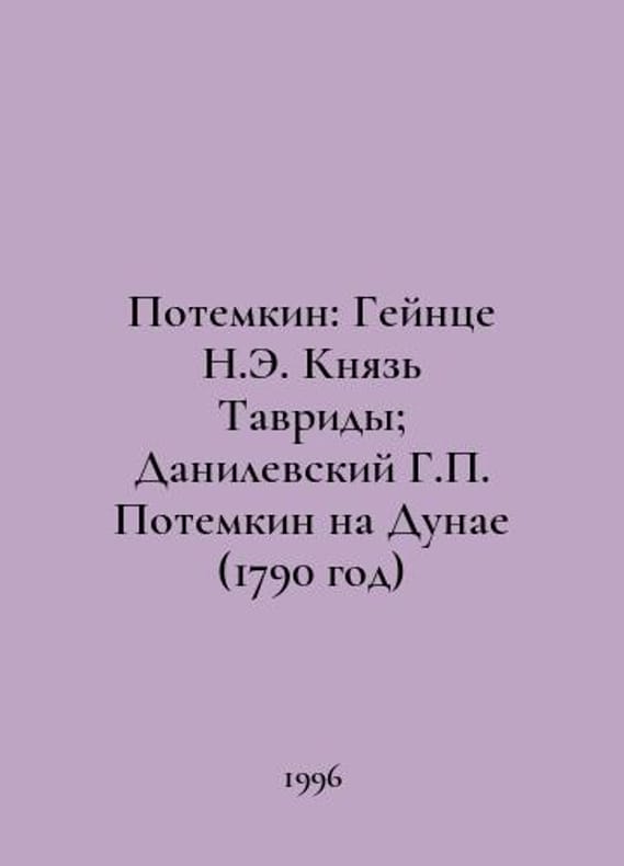 "Potemkin: Heinze N.E. Prince of Tavrida; Danilevsky H. Potemkin on the Danube (1790) In Russian /Potemkin: Geyntse N.E. Knyaz Tavridy; Danilevskiy G. Potemkin na Dunae (1790 god) Associates and favorites (series) of M Armada 1996. You are welcome to reach out to us for a detailed description of the copies currently available. Delivery of this book may take longer than usual including extended processing and pre-shipping time, no expedited shipping is available. Please advise us if you have a set date or a deadline to receive your order.SKUalb2f9c31d22072762e"