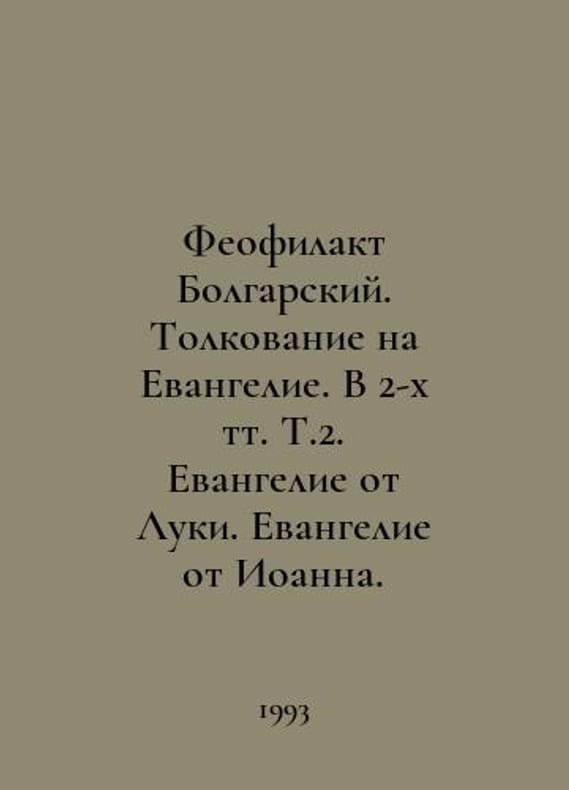 Theophilate of Bulgaria. Interpretation on the Gospel. In 2 Vol.2. the Gospel according to Luke. The Gospel according to John. In Russian /Feofilakt Bolgarskiy. Tolkovanie na Evangelie. V 2-kh tt. T.2. Evangelie ot Luki. Evangelie ot Ioanna. The evangelist, or interpretation of the Blessed Theophilactus, Archbishop of Bulgaria, on the Holy Gospel in two parts. M skit. 1993. You are welcome to reach out to us for a detailed description of the copies currently available. Delivery of this book may take longer than usual including extended processing and pre-shipping time, no expedited shipping is available. Please advise us if you have a set date or a deadline to receive your order.SKUalb30fdfc6e0e89fbe8