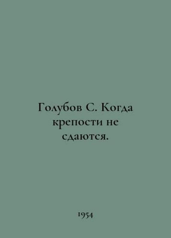 Golubov C. When the fortresses do not surrender. In Russian /Golubov S. Kogda kreposti ne sdayutsya. Novel in two books Petrozavodsk Karelia 1975.Contact us for details or to request photos of available books. Delivery of this book could take longer than normal due to additional handling time before shipping, and no rush delivery options are available. Please let us know if you have a specific date by which you need to receive your order.SKUalb71a97b72c90d7578