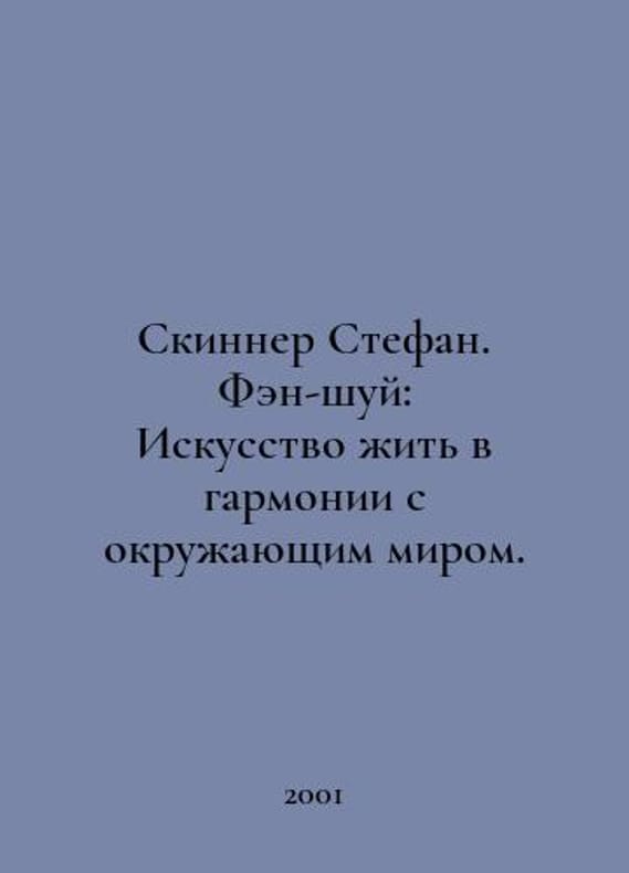 Skinner Stefan. Feng Shui: The Art of Living in Harmony with the World. In Russian /Skinner Stefan. Fen-shuy: Iskusstvo zhit v garmonii s okruzhayushchim mirom. M.: Nyola the 21st Century, 2001..You are welcome to reach out to us for a detailed description of the copies currently available. Delivery of this book may take longer than usual including extended processing and pre-shipping time, no expedited shipping is available. Please advise us if you have a set date or a deadline to receive your order. SKUalb31a185121a1e9ba6