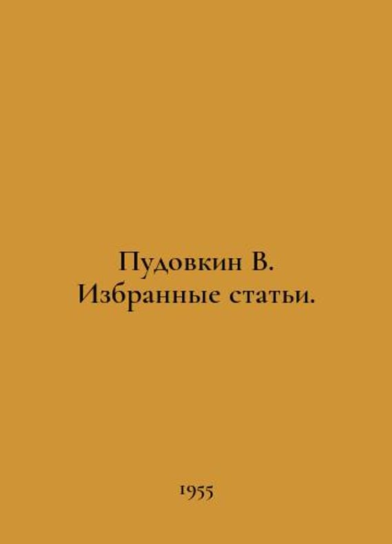 Pudovkin V. Selected Articles. In Russian /Pudovkin V. Izbrannye stati. Editor-Compiler and Author of Notes I. Dolinsky M. Art. 1955. You are welcome to reach out to us for a detailed description of the copies currently available. Delivery of this book may take longer than usual including extended processing and pre-shipping time, no expedited shipping is available. Please advise us if you have a set date or a deadline to receive your order.SKUalb32fbfd2b13b81833