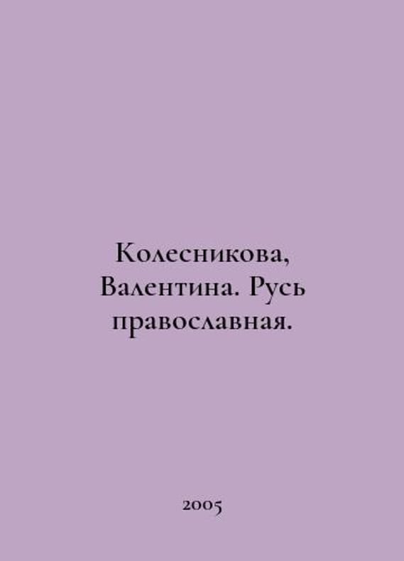 Kolesnikova, Valentina. Orthodox Rus. In Russian /Kolesnikova, Valentina. Rus pravoslavnaya. Holidays and rites. M. OLMA-PRESS. 2005.You are welcome to reach out to us for a detailed description of the copies currently available. SKUalb3319e542a98d0c78.
