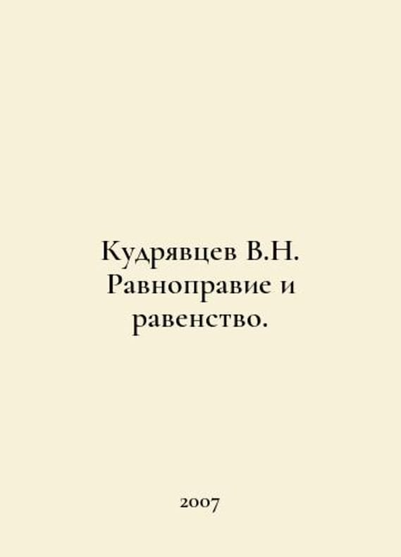 Kudryavtsev V.N. Equality and Equality. In Russian /Kudryavtsev V.N. Ravnopravie i ravenstvo. M. Nauka. 2007.You are welcome to reach out to us for a detailed description of the copies currently available. SKUalb337e5d6188ed3a63.