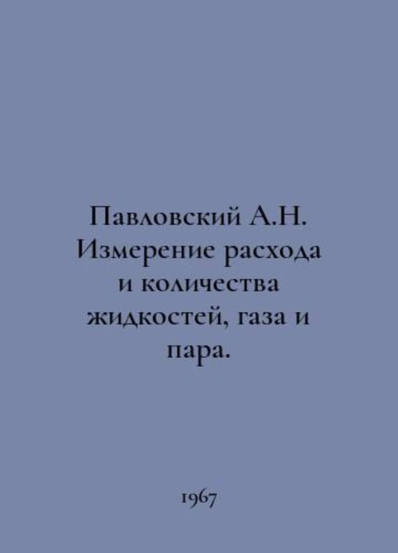 Pavlovsky A.N. Measurement of flow and quantity of liquids, gas, and steam. In Russian /Pavlovskiy A.N. Izmerenie raskhoda i kolichestva zhidkostey, gaza i para. Monograph by M. Publishing House of the Committee of Standards, Measures and Measurement Instruments under the Council of Ministers of the USSR, 1967.You are welcome to reach out to us for a detailed description of the copies currently available. SKUalb338c890e52f5d16d.