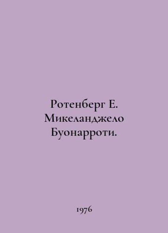 Rothenberg E. Michelangelo Buonarroti. In Russian /Rotenberg E. Mikelandzhelo Buonarroti. M Visual Arts 1977. You are welcome to reach out to us for a detailed description of the copies currently available. SKUalbdccb500a69cba4ff.