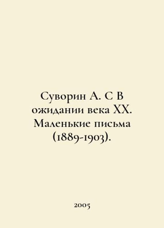 Suvorin A. S Waiting for the 20th Century. Small Letters (1889-1903). In Russian /Suvorin A. S V ozhidanii veka XX. Malenkie pisma (1889-1903). M. Algorithm. 2005. You are welcome to reach out to us for a detailed description of the copies currently available. Delivery of this book may take longer than usual including extended processing and pre-shipping time, no expedited shipping is available. Please advise us if you have a set date or a deadline to receive your order.SKUalb35345fe7e97196f7