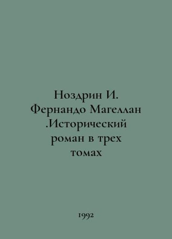 Nozdrin I. Fernando Magellan: A Historical Novel in Three Volumes In Russian /Nozdrin I. Fernando Magellan.Istoricheskiy roman v trekh tomakh Krasnoyarsk Offset 1992. You are welcome to reach out to us for a detailed description of the copies currently available. Delivery of this book may take longer than usual including extended processing and pre-shipping time, no expedited shipping is available. Please advise us if you have a set date or a deadline to receive your order.SKUalb3583e9020b667aaa