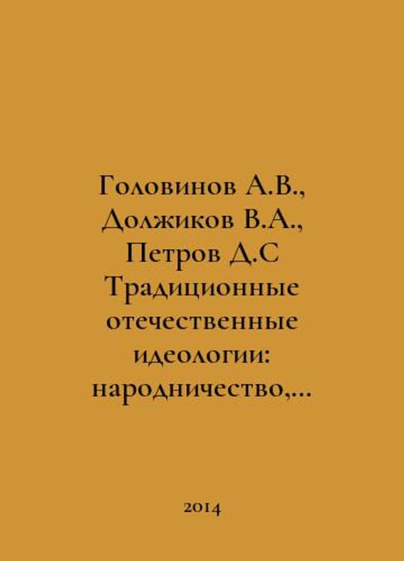 Golovinov A.V., Dolzhikov V.A., Petrov D.S Traditional Russian Ideologies: Narodniki, Oblast, Tolstoy. In Russian /Golovinov A.V., Dolzhikov V.A., Petrov D.S Traditsionnye otechestvennye ideologii: narodnichestvo, oblastnichestvo, tolstovstvo. Textbook. Barnaul AltGU 2014. You are welcome to reach out to us for a detailed description of the copies currently available. Delivery of this book may take longer than usual including extended processing and pre-shipping time, no expedited shipping is available. Please advise us if you have a set date or a deadline to receive your order.SKUalb367ea273c08e6c04