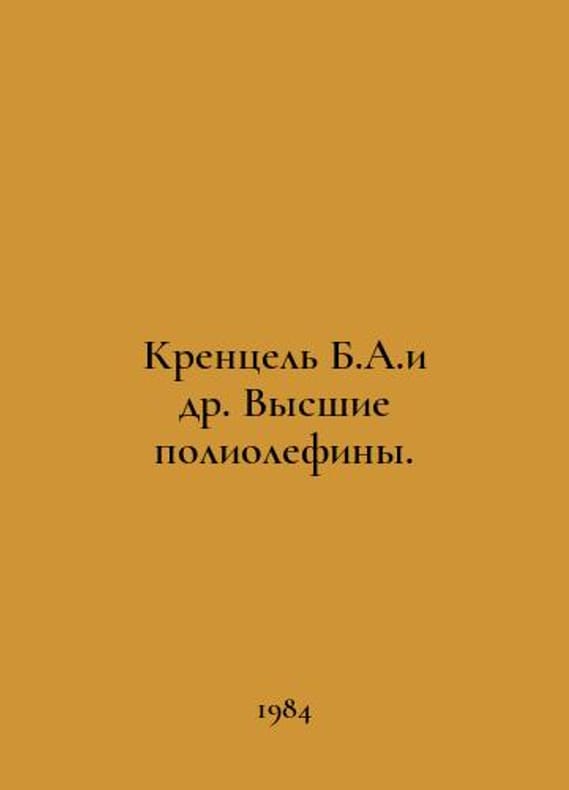 Krenzel B.A. et al. Higher Poliolefins. In Russian /Krentsel B.A.i dr. Vysshie poliolefiny. M. Chemiya 1984..You are welcome to reach out to us for a detailed description of the copies currently available. Delivery of this book may take longer than usual including extended processing and pre-shipping time, no expedited shipping is available. Please advise us if you have a set date or a deadline to receive your order. SKUalb372f2816c8b87102