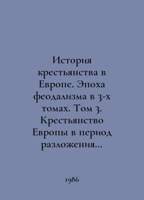 The History of the Peasantry in Europe. The Age of Feudalism in 3 Volumes. Volume 3. The Peasantry of Europe at the Period of Decay of Feudalism and the Beginning of Capitalist Relations. In Russian /Istoriya krestyanstva v Evrope. Epokha feodalizma v 3-kh tomakh. Tom 3. Krestyanstvo Evropy v period razlozheniya feodalizma i zarozhdeniya kapitalisticheskikh otnosheniy. Academy of Sciences of the SSSR.Institute of General History. M. Science. 1986. You are welcome to reach out to us for a detailed description of the copies currently available. Delivery of this book may take longer than usual including extended processing and pre-shipping time, no expedited shipping is available. Please advise us if you have a set date or a deadline to receive your order.SKUalb37b1096f6307b94f