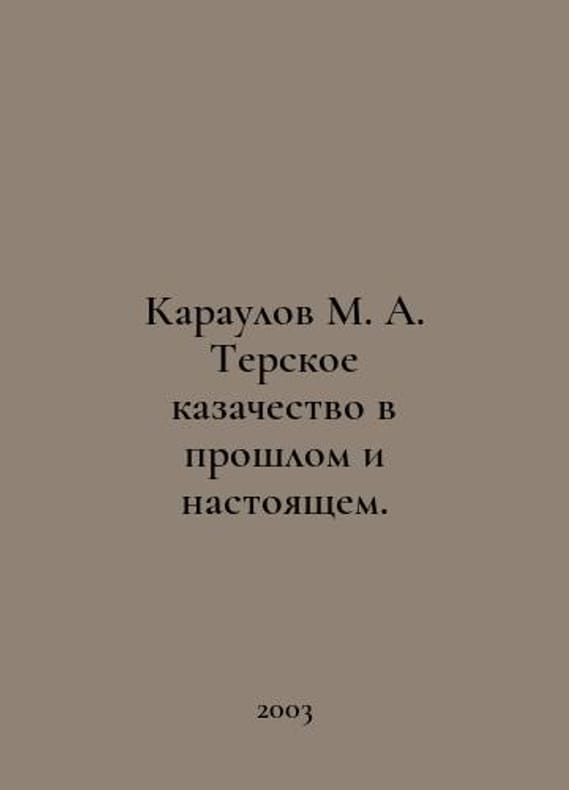 Karaulov M.A. Terskoye Cossacks in the Past and Present. In Russian (ask us if in doubt)/Karaulov M.A. Terskoe kazachestvo v proshlom i nastoyashchem. Reprinted edition of St. Petersburg Petrogradskaya Stanitsa 2003 376 p. SKUalbe7c34241d5036036.