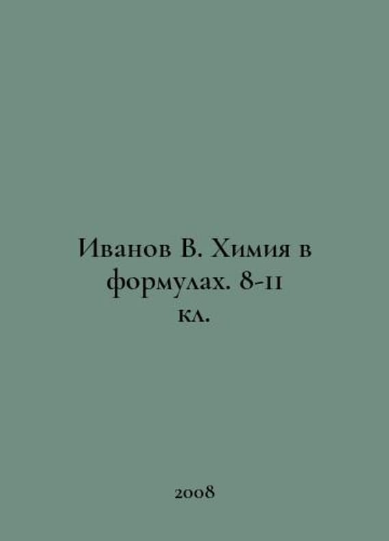 Ivanov V. Chemistry in formulas. 8-11 kl. In Russian /Ivanov V. Khimiya v formulakh. 8-11 kl. Materials from 5 M Droff 2008..You are welcome to reach out to us for a detailed description of the copies currently available. Delivery of this book may take longer than usual including extended processing and pre-shipping time, no expedited shipping is available. Please advise us if you have a set date or a deadline to receive your order. SKUalb37e9c96ee295d21b