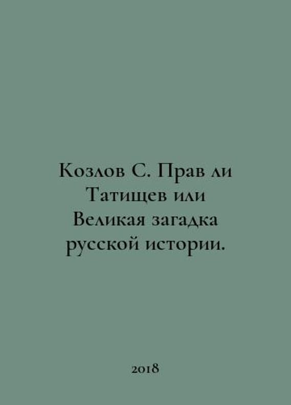 Kozlov S. Is Tatishchev Right or the Great Mystery of Russian History. In Russian /Kozlov S. Prav li Tatishchev ili Velikaya zagadka russkoy istorii. M. 2018. You are welcome to reach out to us for a detailed description of the copies currently available. Delivery of this book may take longer than usual including extended processing and pre-shipping time, no expedited shipping is available. Please advise us if you have a set date or a deadline to receive your order.SKUalb37f9fead61135774