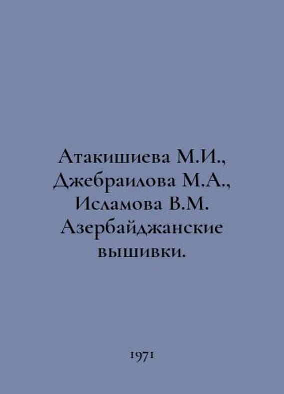 Atakishieva M.I., Djebrailova M.A., Islamova V.M. Azerbaijani embroideries. In Russian /Atakishieva M.I., Dzhebrailova M.A., Islamova V.M. Azerbaydzhanskie vyshivki. Under the editorship of Prof. A. Azizbekova. Museum of History of Azerbaijan of the Academy of Sciences of the Azerbaijan SSR. Moscow: Art 1971.You are welcome to reach out to us for a detailed description of the copies currently available. SKUalb3854d1cad7911c1a.