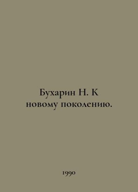 N. Bukharin to a new generation. In Russian /Bukharin N. K novomu pokoleniyu. Reports, speeches and articles on youth problems. Moscow, Progress, 1990. You are welcome to reach out to us for a detailed description of the copies currently available. Delivery of this book may take longer than usual including extended processing and pre-shipping time, no expedited shipping is available. Please advise us if you have a set date or a deadline to receive your order.SKUalb38921c9d1b170241