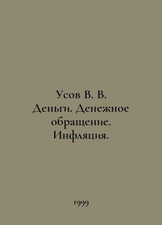 V. V. Money. Monetary Circulation. Inflation. In Russian /Usov V. V. Dengi. Denezhnoe obrashchenie. Inflyatsiya. A textbook for higher education institutions. Series: Textbooks for higher education institutions. M. Banks and exchanges, UNITI. 1999.You are welcome to reach out to us for a detailed description of the copies currently available. SKUalb38b7b75ad91d57b4.