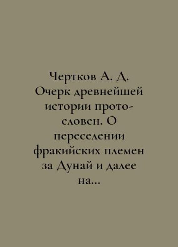 Chertkov A. D. Essay on ancient history proto-slogans. On the resettlement of Thracian tribes beyond the Danube and further north, to the Baltic Sea and to us in Russia. In Russian /Chertkov A. D. Ocherk drevneyshey istorii proto-sloven. O pereselenii frakiyskikh plemen za Dunay i dalee na sever, k Baltiyskomu moryu i k nam na Rus. Moscow Publishing House V. Sekachev 2022. 148s. You are welcome to reach out to us for a detailed description of the copies currently available. Delivery of this book may take longer than usual including extended processing and pre-shipping time, no expedited shipping is available. Please advise us if you have a set date or a deadline to receive your order.SKUalb3a353c198964fc06