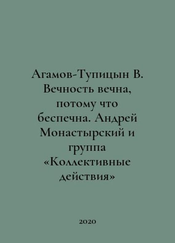 Agamov-Tupitsyn V. Eternity is eternal because it is carefree. Andrei Monastyrsky and the collective action group. In Russian /Agamov-Tupitsyn V. Vechnost vechna, potomu chto bespechna. Andrey Monastyrskiy i gruppa Kollektivnye deystviya M.: Garage, 2020. You are welcome to reach out to us for a detailed description of the copies currently available. Delivery of this book may take longer than usual including extended processing and pre-shipping time, no expedited shipping is available. Please advise us if you have a set date or a deadline to receive your order.SKUalb3aef4af7312b99af