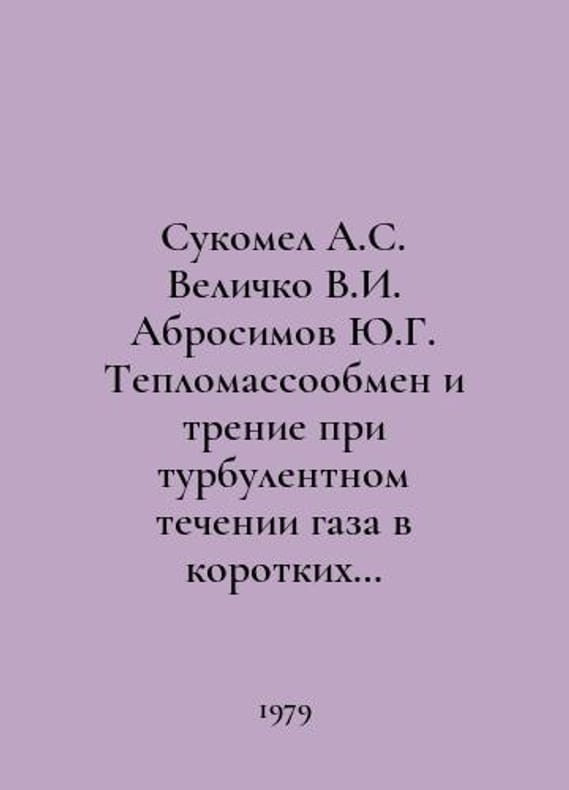Sukomel A.S. Velichko V.I. Abrosimov Yu.G. Heat transfer and friction during turbulent gas flow in short channels. In Russian /Sukomel A.S. Velichko V.I. Abrosimov Yu.G. Teplomassoobmen i trenie pri turbulentnom techenii gaza v korotkikh kanalakh. M. Energia 1979.You are welcome to reach out to us for a detailed description of the copies currently available. SKUalb3b06c0ffe40ed1c4.