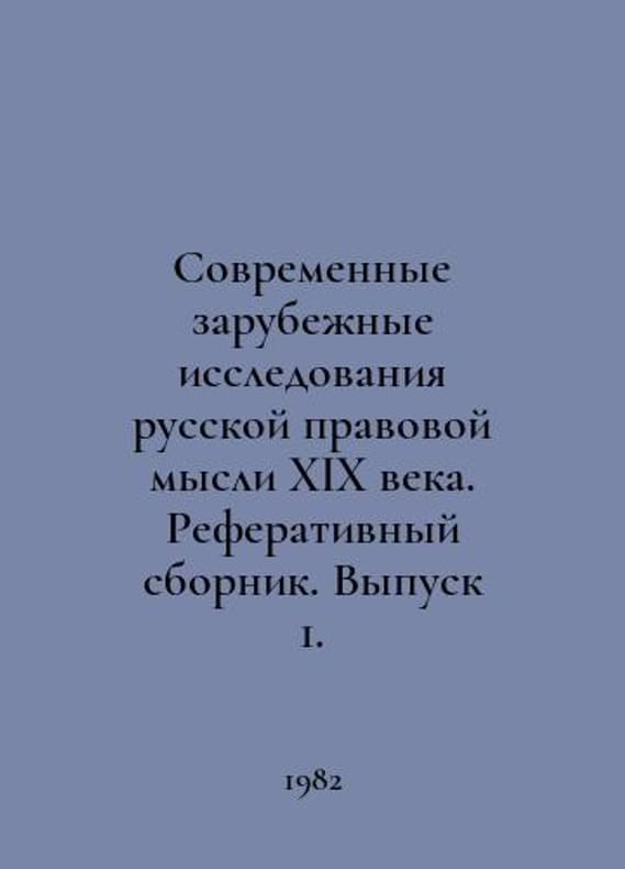 Modern Foreign Studies of Russian Legal Thought of the 19th Century. Abstract collection. Issue 1. In Russian /Sovremennye zarubezhnye issledovaniya russkoy pravovoy mysli XIX veka. Referativnyy sbornik. Vypusk 1. In the title: Academy of Sciences. Institute of Scientific Information on General Sciences. Moscow 1982. You are welcome to reach out to us for a detailed description of the copies currently available. Delivery of this book may take longer than usual including extended processing and pre-shipping time, no expedited shipping is available. Please advise us if you have a set date or a deadline to receive your order.SKUalb3b1654ca5ab3c435