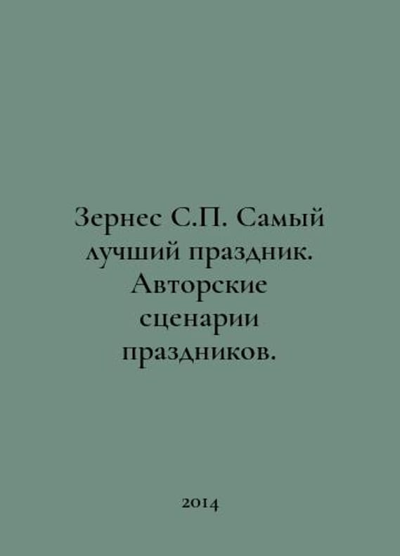 Zernes S. The best holiday. Authors holiday scripts. In Russian /Zernes S. Samyy luchshiy prazdnik. Avtorskie stsenarii prazdnikov. Edition 3. Rostov-on-Don Phoenix 2014..You are welcome to reach out to us for a detailed description of the copies currently available. Delivery of this book may take longer than usual including extended processing and pre-shipping time, no expedited shipping is available. Please advise us if you have a set date or a deadline to receive your order. SKUalb3bed040dbcd28e89