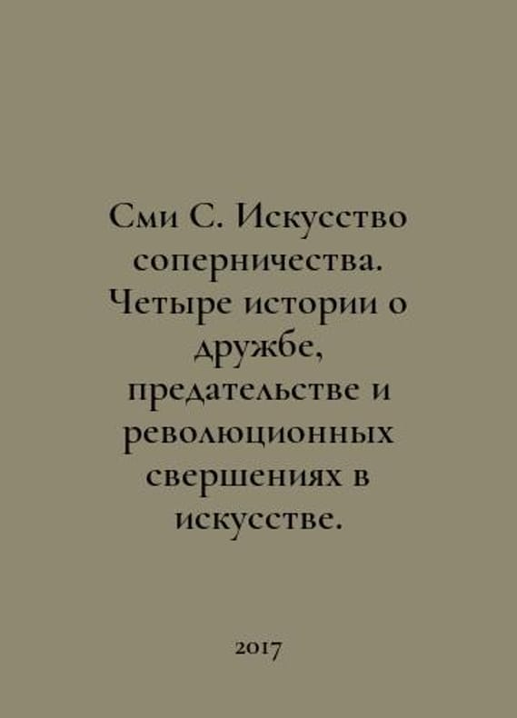 Media C. The Art of Rivalry: Four Stories of Friendship, Betrayal, and Revolutionary Achievements in Art. In Russian /Smi S. Iskusstvo sopernichestva. Chetyre istorii o druzhbe, predatelstve i revolyutsionnykh sversheniyakh v iskusstve. St. Petersburg ABC, ABC-Atticus. 2017 year. You are welcome to reach out to us for a detailed description of the copies currently available. SKUalb3ce7bea3e1b83ff1.