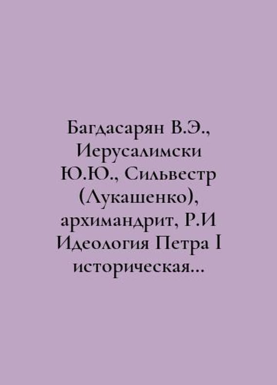 Baghdasaryan V.E., Yu. Yu. Jerusalemski, Sylvester (Lukashenko), Archimandrite, R.I. Peter Is Ideology is a historical crossroads and the choice of a model for the development of the state. In Russian /Bagdasaryan V.E., Ierusalimski Yu.Yu., Silvestr (Lukashenko), arkhimandrit, R.I Ideologiya Petra I istoricheskaya razvilka i vybor modeli razvitiya gosudarstva. Yaroslavl 2022 216 p and 16 incl. You are welcome to reach out to us for a detailed description of the copies currently available. Delivery of this book may take longer than usual including extended processing and pre-shipping time, no expedited shipping is available. Please advise us if you have a set date or a deadline to receive your order.SKUalb3d0eac26a9469b3b