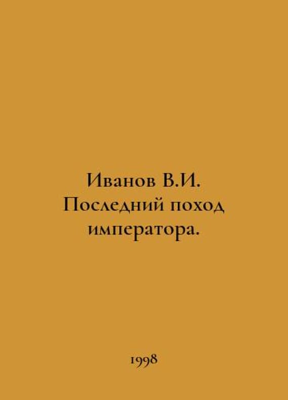 Ivanov V.I. The Emperors Last March. In Russian /Ivanov V.I. Posledniy pokhod imperatora. M. Mosobluprpolygraphizdat. 1998. You are welcome to reach out to us for a detailed description of the copies currently available. Delivery of this book may take longer than usual including extended processing and pre-shipping time, no expedited shipping is available. Please advise us if you have a set date or a deadline to receive your order.SKUalb3f2f1420c827c345