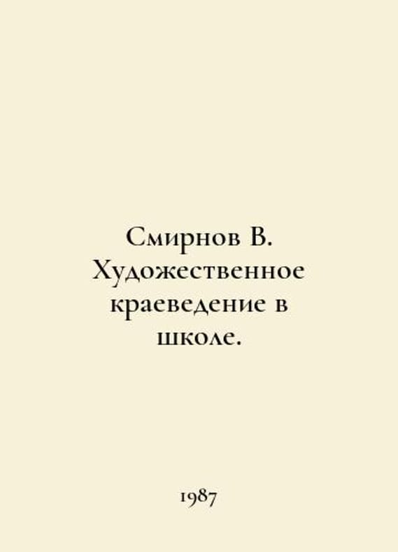 Smirnov V. Art studies at school. In Russian /Smirnov V. Khudozhestvennoe kraevedenie v shkole. For Teaches. M Enlightenment 1987. You are welcome to reach out to us for a detailed description of the copies currently available. Delivery of this book may take longer than usual including extended processing and pre-shipping time, no expedited shipping is available. Please advise us if you have a set date or a deadline to receive your order.SKUalb3fd1601274cb3170