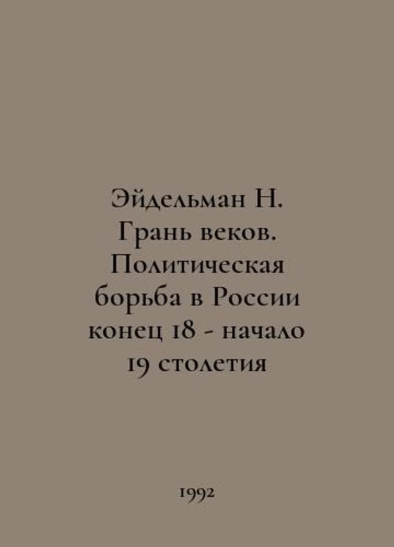 Eidelman N. The Edge of the Century. Political Struggle in Russia at the End of the 18th - the Beginning of the 19th Century In Russian /Eydelman N. Gran vekov. Politicheskaya borba v Rossii konets 18 - nachalo 19 stoletiya St. Petersburg Exlibris 1992. You are welcome to reach out to us for a detailed description of the copies currently available. Delivery of this book may take longer than usual including extended processing and pre-shipping time, no expedited shipping is available. Please advise us if you have a set date or a deadline to receive your order.SKUalb3ffefbf9dbef2c5c