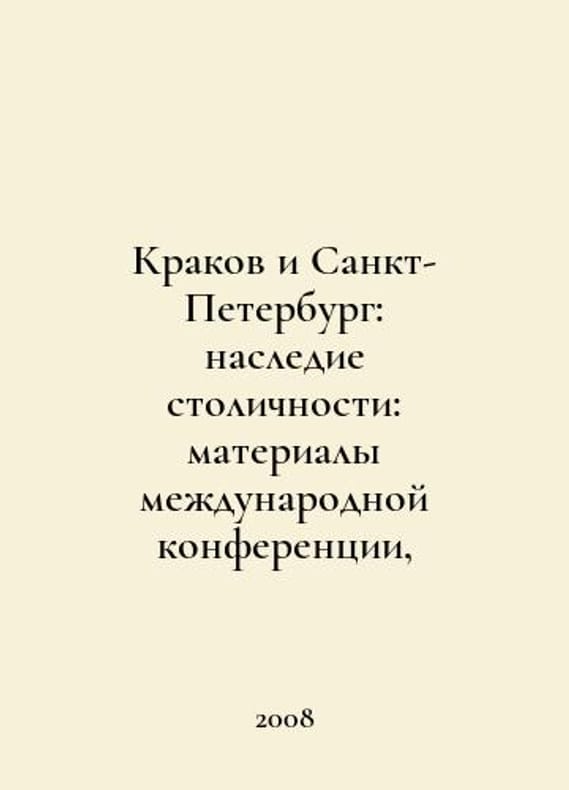 Krakow and St. Petersburg: The Capitals Legacy: Proceedings of an International Conference, In Russian /KrakoviSankt-Peterburg: nasledie stolichnosti: materialy mezhdunarodnoy konferentsii, In cooperation with the Polish Institute, Consulate General of the Republic of Poland in St. Petersburg, 3-4 October 2008. You are welcome to reach out to us for a detailed description of the copies currently available. Delivery of this book may take longer than usual including extended processing and pre-shipping time, no expedited shipping is available. Please advise us if you have a set date or a deadline to receive your order.SKUalb41ab6554b57d74e8