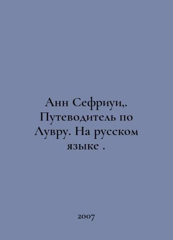 Anne Sefrioui,. A guide to the Louvre. In Russian. In Russian /Ann Sefriui,. Putevoditel po Luvru.Na russkom yazyke. Geoffroy-Schneiter, Berenice, Jover, Manuel. Paris Musee du Louvre 2007.You are welcome to reach out to us for a detailed description of the copies currently available. SKUalb449733a3a07141a1.