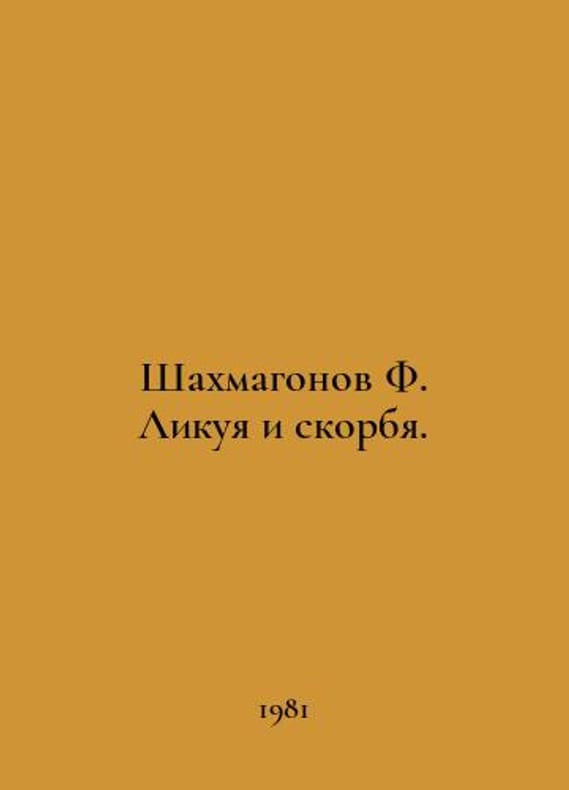 F. Chesss jubilation and sorrow. In Russian /Shakhmagonov F. Likuya i skorbya. Roman. 432s.We have thousands of titles and often several copies of each title may be available. Please feel free to contact us for a detailed description of the copies available.SKUalb044b36f2da1c2ea4.