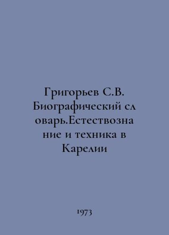 Grigoryev S.V. Biographical Dictionary. Natural Science and Technology in Karelia In Russian /Grigorev S.V. Biograficheskiy slovar.Estestvoznanie i tekhnika v Karelii Petrozavodsk Karelia 1973.You are welcome to reach out to us for a detailed description of the copies currently available. SKUalb45526bfa79176b13.