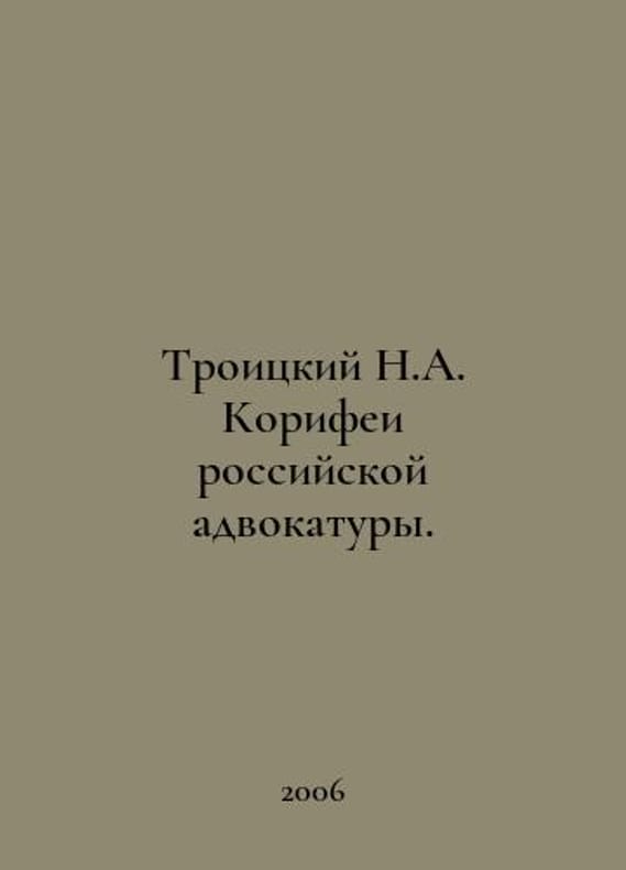 Troitsky N.A. Corifei of the Russian Bar. In Russian /Troitskiy N.A. Korifei rossiyskoy advokatury. Series: Russias Forgotten and Unknown M Centropolygraph 2006. You are welcome to reach out to us for a detailed description of the copies currently available. Delivery of this book may take longer than usual including extended processing and pre-shipping time, no expedited shipping is available. Please advise us if you have a set date or a deadline to receive your order.SKUalb45935ca55621f3f5