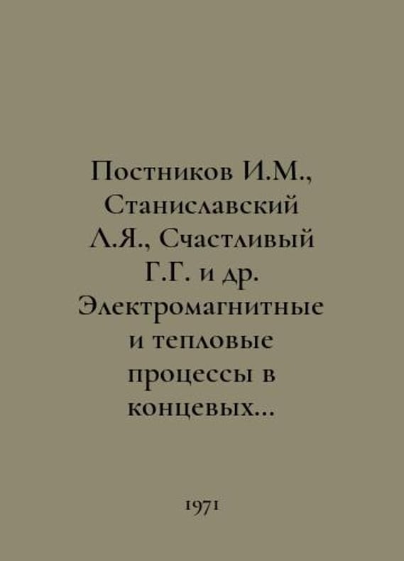 Postnikov I.M., Stanislavsky L.Ya., Happy G.G. et al. Electromagnetic and thermal processes in the end parts of powerful turbogenerators (research and calculations). In Russian /Postnikov I.M., Stanislavskiy L.Ya., Schastlivyy G.G. i dr. Elektromagnitnye i teplovye protsessy v kontsevykh chastyakh moshchnykh turbogeneratorov (issledovaniya i raschety). Rev. I.M. Postnikov, L.Ya. Stanislavsky. Kyiv Naukaova Duma 1971.You are welcome to reach out to us for a detailed description of the copies currently available. SKUalb46c309d4cdf123a5.