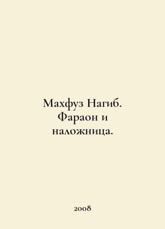 Mahfuz Naguib. Pharaoh and concubine. In Russian /Makhfuz Nagib. Faraon i nalozhnitsa. Translation from English by N. N. Lilienthal. Moscow, The World of Books, 2008. You are welcome to reach out to us for a detailed description of the copies currently available. Delivery of this book may take longer than usual including extended processing and pre-shipping time, no expedited shipping is available. Please advise us if you have a set date or a deadline to receive your order.SKUalb46f9cc5e83bf2d1c