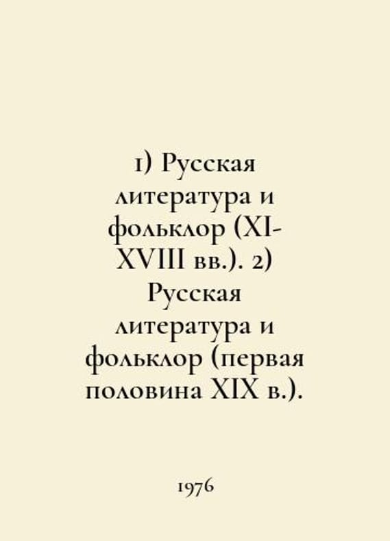 1) Russian Literature and Folklore (XI-XVIII centuries). 2) Russian Literature and Folklore (first half of XIX centuries). In Russian /1) Russkaya literatura i folklor (XI-XVIII vv.). 2) Russkaya literatura i folklor (pervaya polovina XIX v.). In the title: Academy of Sciences. Institute of Russian Literature (Pushkin House) L. Nauka. Leningrad Branch 1970, 1976.You are welcome to reach out to us for a detailed description of the copies currently available. SKUalb4706e8eab5bdc569.