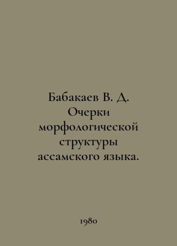 Babakaev V. D. Essays on the morphological structure of the Assam language. In Russian /Babakaev V. D. Ocherki morfologicheskoy struktury assamskogo yazyka. M. Chief Editor of Oriental Literature, Science 1980. You are welcome to reach out to us for a detailed description of the copies currently available. Delivery of this book may take longer than usual including extended processing and pre-shipping time, no expedited shipping is available. Please advise us if you have a set date or a deadline to receive your order.SKUalb474543fdd82225ef