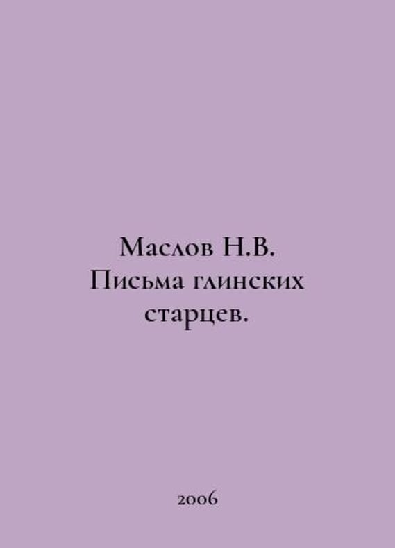 Maslov N.V. Letters from the Elders of Clay. In Russian /Maslov N.V. Pisma glinskikh startsev. M Samshit-izdat. 2006..You are welcome to reach out to us for a detailed description of the copies currently available. Delivery of this book may take longer than usual including extended processing and pre-shipping time, no expedited shipping is available. Please advise us if you have a set date or a deadline to receive your order. SKUalb48ba02722ceb37ce