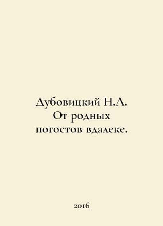 N.A. Dubovitsky is far away from his family. In Russian /Dubovitskiy N.A. Ot rodnykh pogostov vdaleke. Vladimir Kaleidoscope 2016. You are welcome to reach out to us for a detailed description of the copies currently available. SKUalb493b3441f1e14809.
